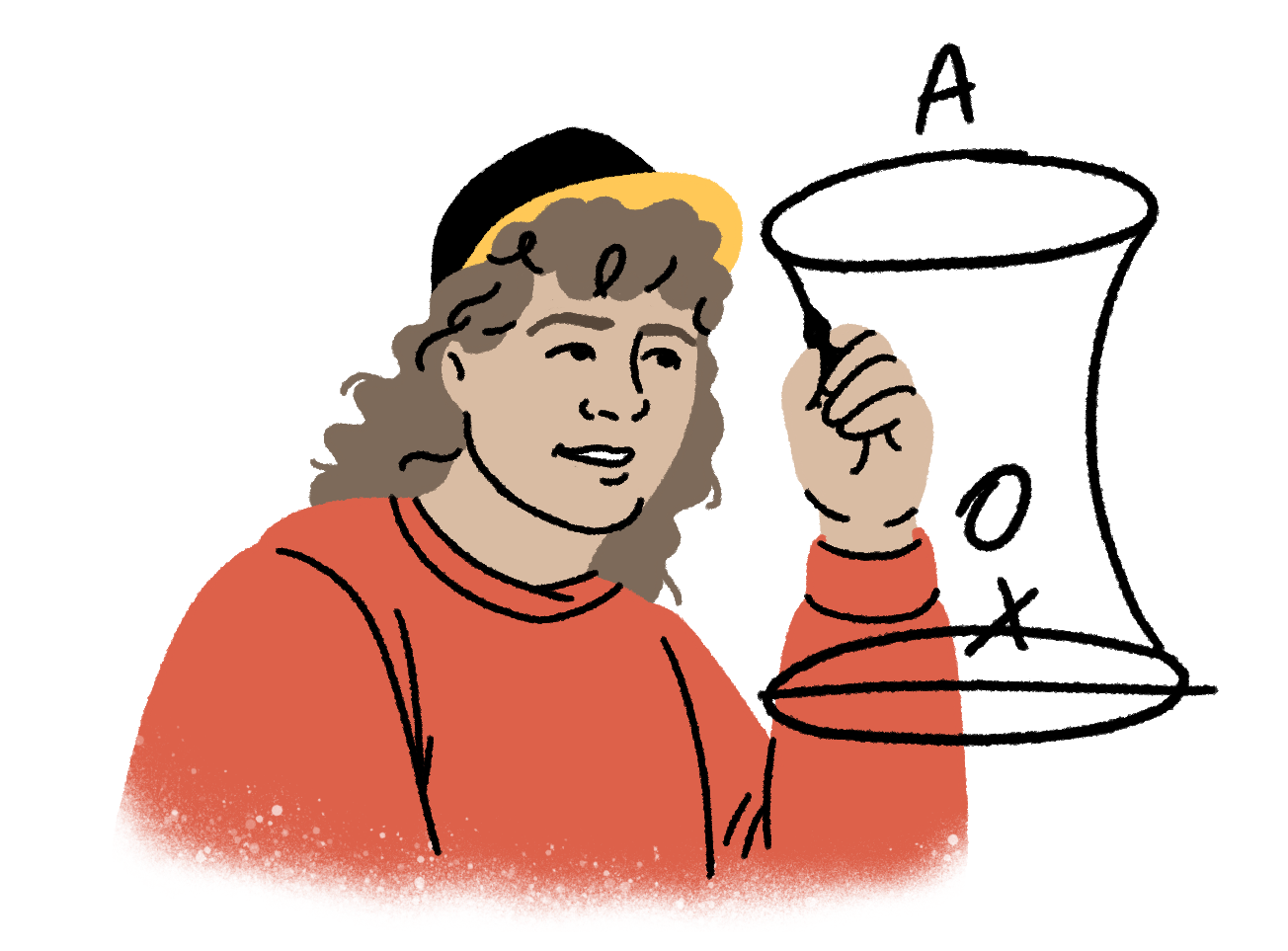 Instead of relying on words alone, risking confusing the group with abstract theory or jargon, Dustin grabs a marker and draws out his theory on the closest surface to hand: a window. Moving swiftly past the cinematographic genius of this moment, the composition allowing us to see not just Dustin’s explanation and the visual coming together in front of him, but understanding gradually dawning on his friends’ faces (sighs in artist)…