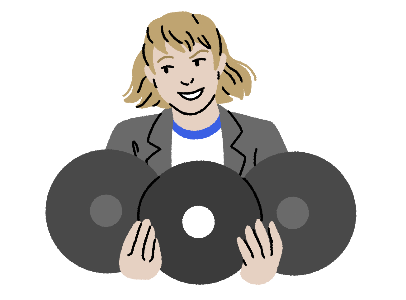 Somehow, she grabs three of the most iconic vinyls of the era from the endless shelves at random, but I guess this isn’t the series to worry about realism…